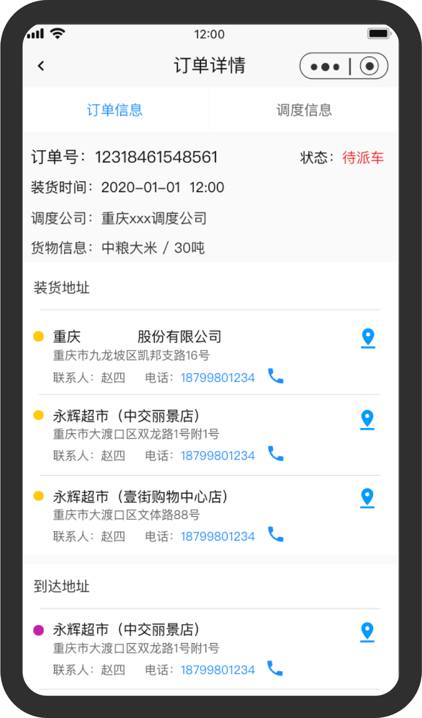 车辆调度系统是为厂家或物流公司提供车辆调度计划,装货任务下达,车辆智能排版,车辆打卡报到,车辆运输轨迹记录,排版数据看板等。规范线下车辆排队,可视化监控车辆实时位置,了解司机项目运输时效差异,司机迟到情况,提高车辆调度效率,为业务优化和车辆考核提供数据参考,全程透明车辆调度计划任务安排和排队情况,体现调度公平性降低调度员与司机之间的摩擦,提升公司内部运作效率,增强客户服务体验,降低交互成本!